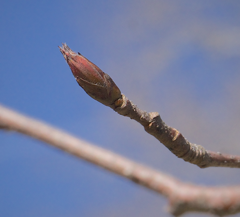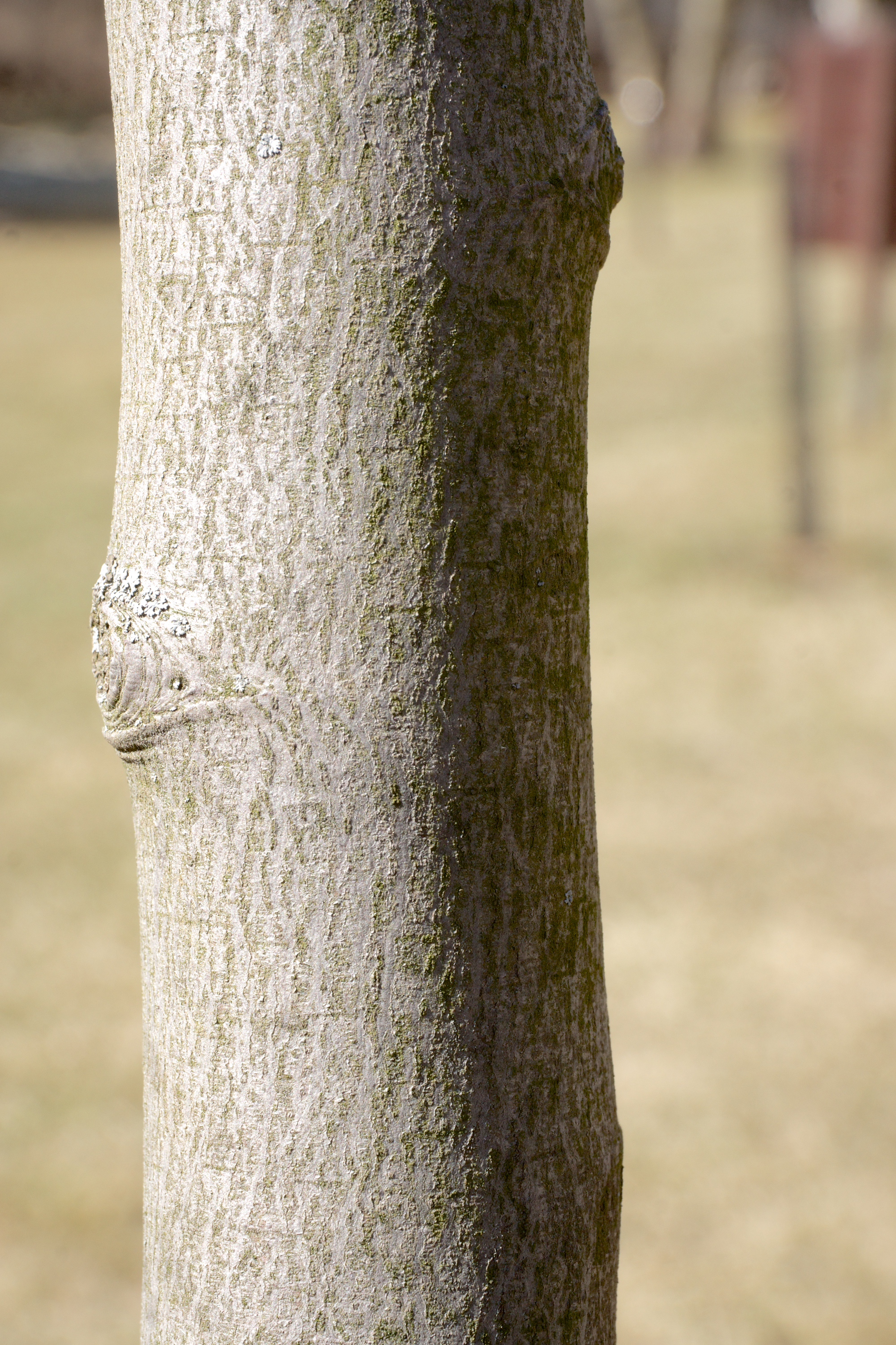 Alternate, simple medium green leaves with serrated edges, approximately 1' wide by 3" long. The leaves turn orange to red in the fall. The gray bark will sometimes have ruddy tones.